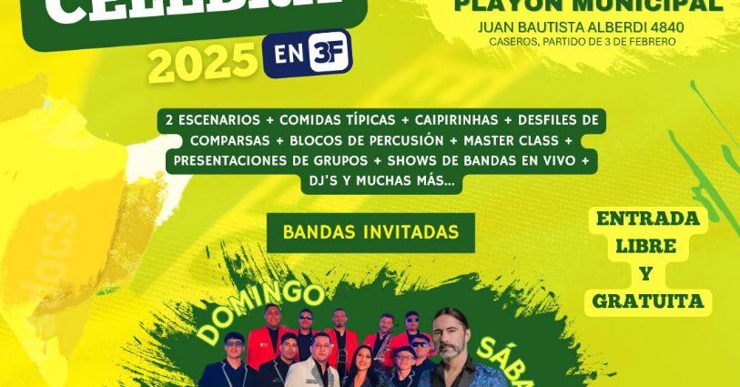 El próximo sábado 16 y domingo 17 de agosto de 2025, se realizazrá el evento Brasil Celebra, en el partido de 3 de Febrero, Provincia de Buenos Aires. Con entrada libre y gratuita, podrás vivir la cultura brasileña a pleno en el conurbano bonaerense. Habrá más de 500 artistas enVer más